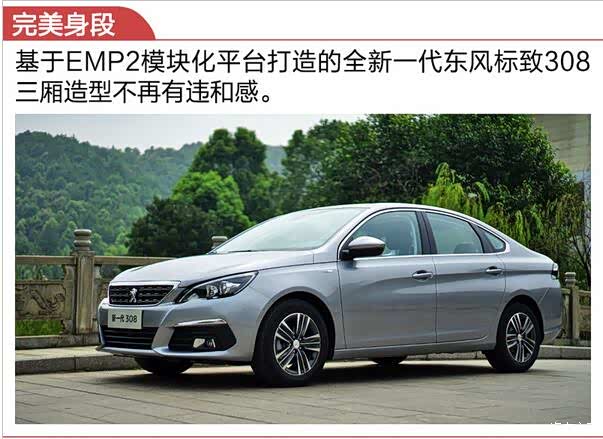 新款308有三个亮点:动感造型,质感造型,驭感科技。 近年来法系车的转变相信每一个人都有看到。标致307系列可以说是在中国大陆打开标致品牌的车型之一(早期的广州标致505不算),那时候的307就是直接在原版两厢的车型上拉出一个尾巴,长得猎奇不说各方面也不是很值得。而多少年轮回东风标致终于正式国产了308,取名308s,无奈两厢以及价格两个因素让这部综合素质不错的法系掀背车上不了星光大道。于是乎国内三厢308毫无悬念的出现了。