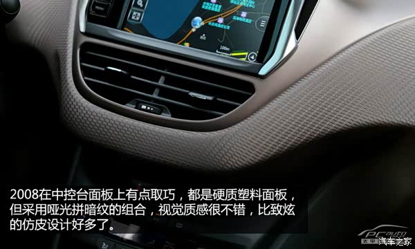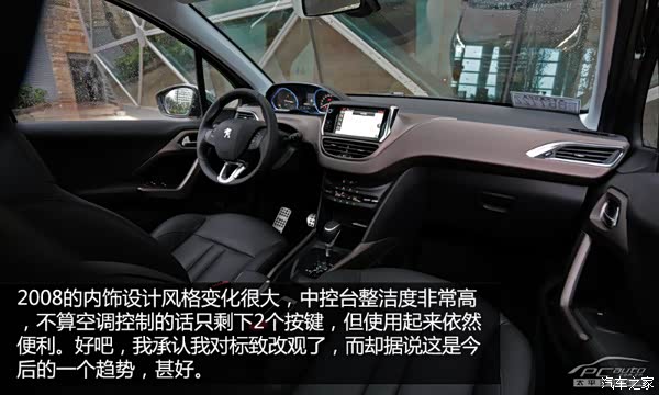 在内饰设计方面2008下了血本,方向盘和玻璃天顶的设计都很能打动消费者。中控台设计比过去的车型简洁很多,简直是质的飞越,预示着标致车的一个转变,怪不得厂家说2008是它们的重头戏。