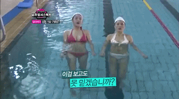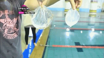 实验结果:妹子们的胸部确实会在浮力的作用下变得圆润并浮起来,但贫乳的妹子似乎浮动并不明显。 四、实践引导理论进步:泳池还能测假胸? “欧派漂浮论”已经被妹子们用实践证实,那这条科学理论在生活中又能发挥什么作用?韩国的一个电视节目告诉我们——水中是鉴别真假胸的绝佳场所! 该节目请来的专家首先给出了自己的看法:相对于密度较低的原生脂肪,乳房填充物的密度肯定大于等于水。▼