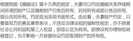 因此,尽管双方没有办理房产过户变更手续,但双方依然受该协议的约束,小丽在离婚诉讼中依据《婚内协议书》约定取得409号房屋的所有权。