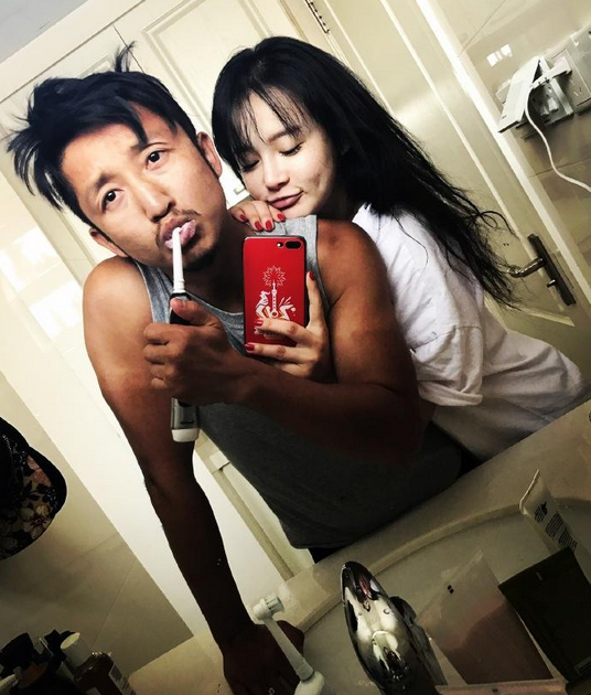 晒照也挺甜的,照片中皱市明应该是刚睡醒,头发乱糟糟,打扮过了的冉莹颖从背后轻轻搂住正在刷牙的邹市明,画面不要太和谐哦!