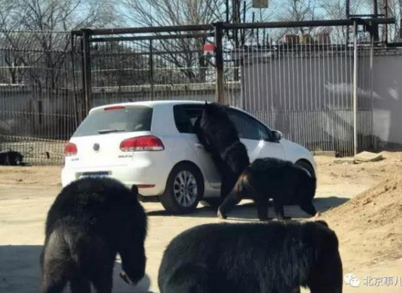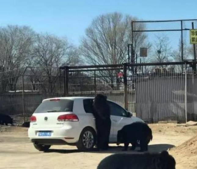 八达岭野生动物世界一黑熊将爪子伸进游客车窗!动物园: ...