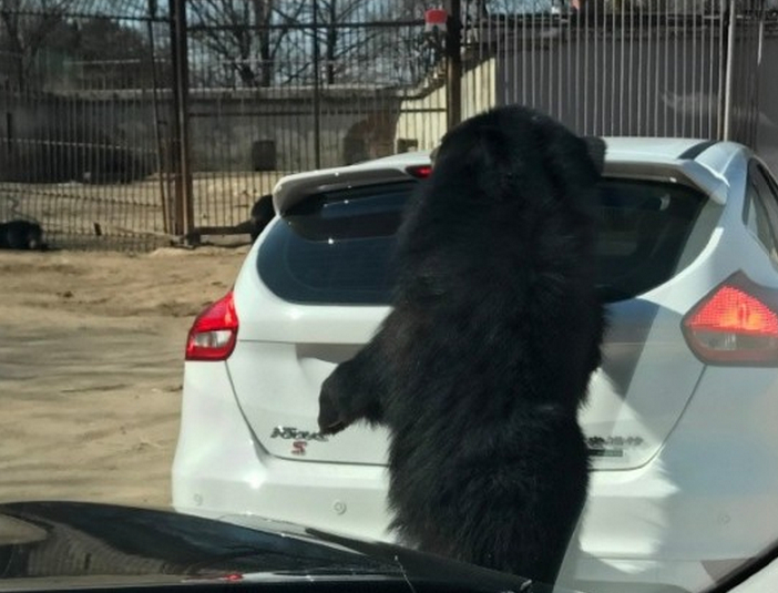 八达岭野生动物世界一黑熊将爪子伸进游客车窗!动物园:游客未落锁