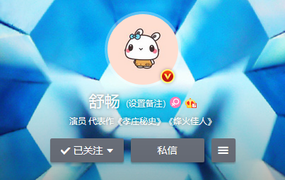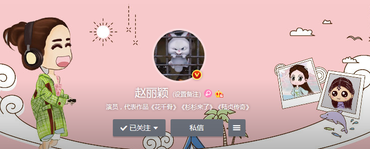 另一个常年以小兔子自称的女明星就是舒畅,她也是1987年出生,同样属兔。她的微博头像同样也是一只兔子,卡通的粉粉的兔子。还经常在微博称自己是兔子。