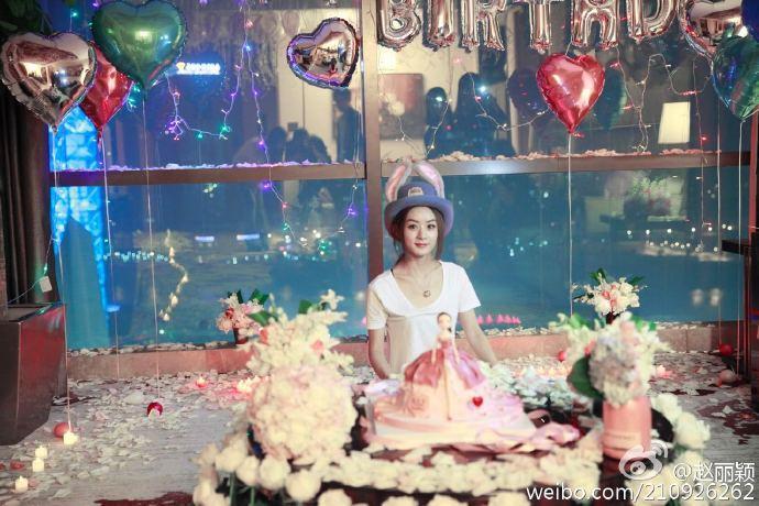 用过“爱拍动漫大头贴的赵小兔”来称呼自己的赵丽颖过生日也一定要带上兔子帽。