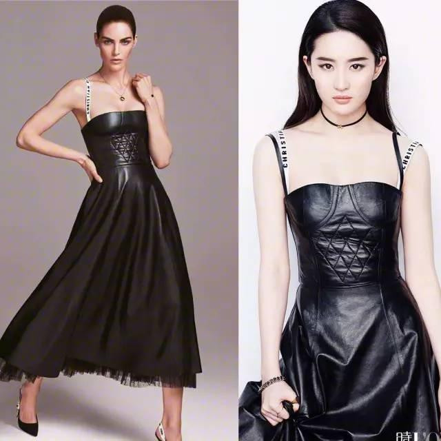 不止内裤边,“Bra带”也是这个系列的特色,国内外很多明星超模都穿过,这几条裙子刷过N个杂志封面,宣传力度杠杠的。 刘亦菲和美国超模希拉里罗达(HilaryRhoda)、唐嫣、王子文撞过这条黑色蕾丝拼接吊带皮裙