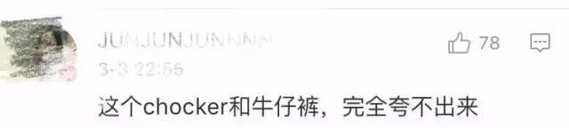 辛亏脖子长,仪态好,气质才得以提升。但戴choker,加上黑夹克把脖子捂的严严实实,脖子仿佛消失了,穿的很拥挤。