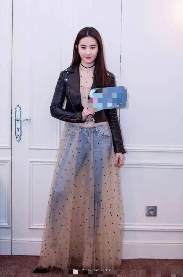 如果说刘亦菲是因为保守才穿牛仔裤的话,雪莉的搭配更合理点。