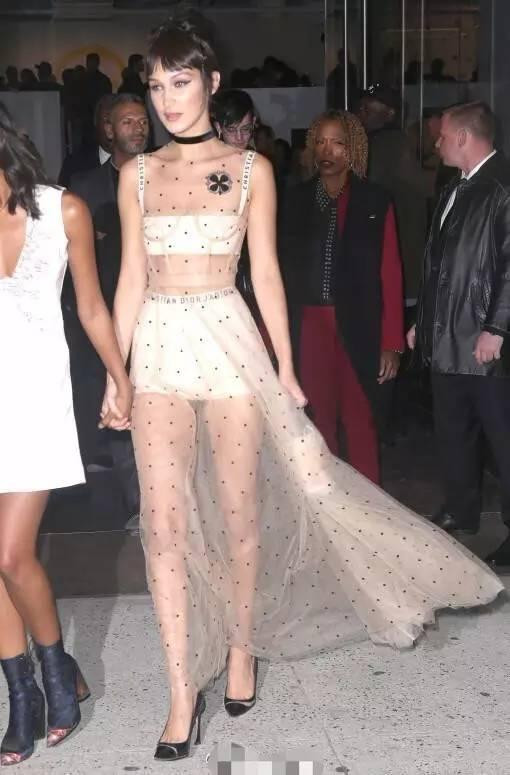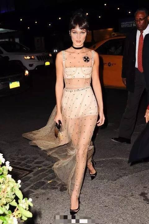 裤子要低调不能喧宾夺主,不能抢了裙子的风头。 BellaHadid的穿法和模特一模一样