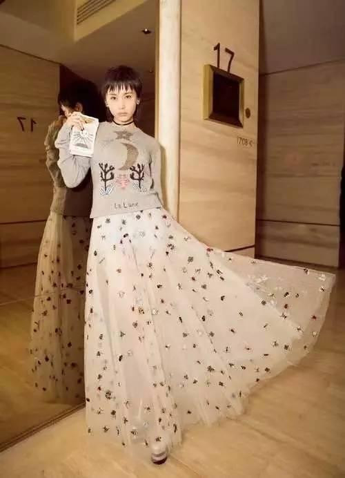 关晓彤也穿过同款,也是遵循了最原始的搭配