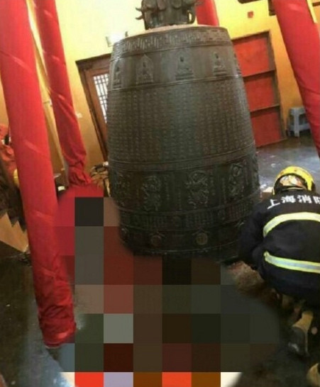 上海静安寺大钟坠落,一女子被困在钟罩里脚被砸断,钟口 ...