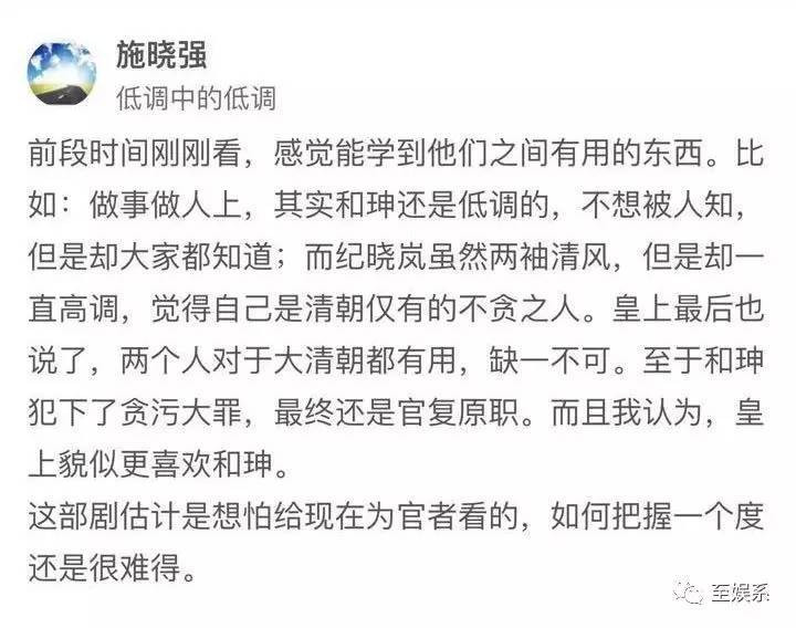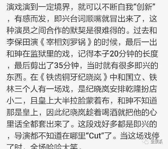 更是因为他演出的和珅不是脸谱化的反派,而是有血有肉的人。他贪婪,但同为文人,他对纪晓岚的风骨存着一分欣赏。