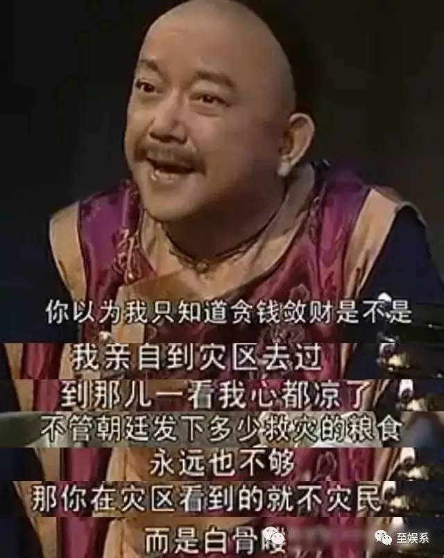 长大了再一细咂摸,只觉得颇有深意。纪晓岚下狱,和珅探望,两人关于饥民、贪官、清官的对话,正是官场两种价值观的对立。纪晓岚气愤赈灾粮被换成了麸糠,和珅却说,一斤粮能换三斤麸糠,已是万幸。纪晓岚心痛灾民不被当作人,和珅却考虑的是国库已被战事耗了很多,他若不变通,那纪晓岚看到的就不是灾民,而是白骨了。