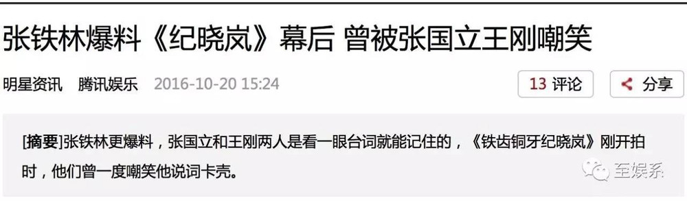 张国立、王刚两人只要看一次台词就能记住,而张铁林要背很久,还经常卡壳,被另外俩人戏称「卡壳王」。