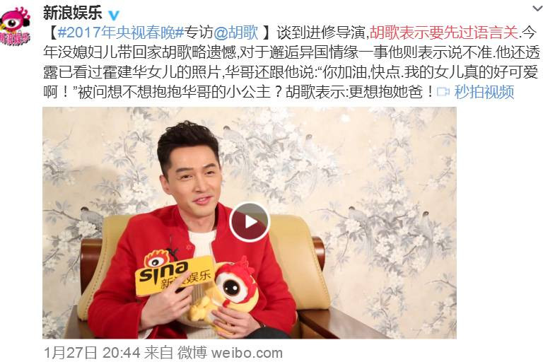 1月27日,在央视春晚后台,胡歌再次被记者逮住,围绕留学计划盘问不止,他终于表示:得先过语言关啊