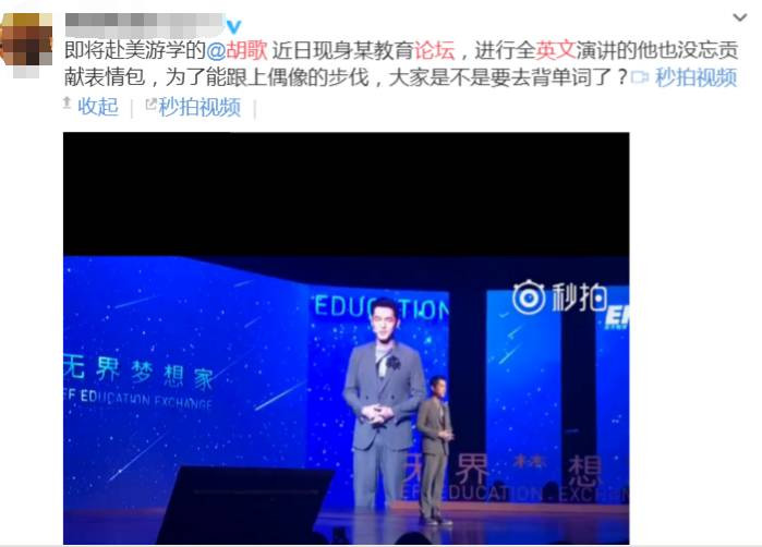 2月25日,胡歌出席了某教育论坛,狠狠秀了一把英文,这是正式给大家交个底,表示自己一切就绪了吗?