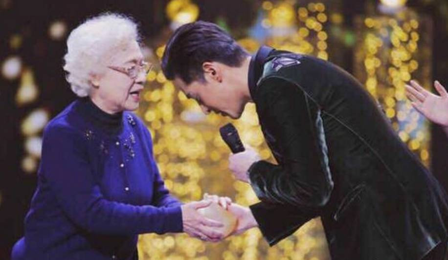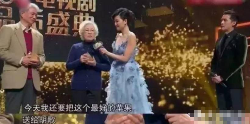 老艺术家秦怡老师领了奖之后,竟然把它传给了胡歌,这时场面就搞得跟皇帝加冕一样了……