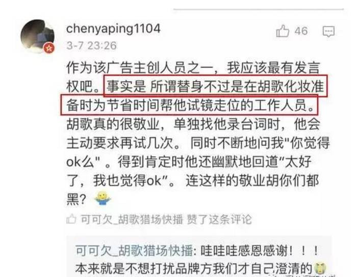 参与了广告拍摄的群众演员也帮助胡歌澄清了当时的情况~