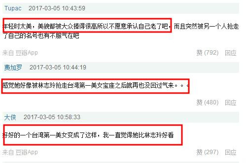 也有网友表示:年轻时太美,美貌都被大众捧得很高所以不愿意承认自己老了吧,而且突然被另一个人抢走了自己的名号也有不服气在吧。