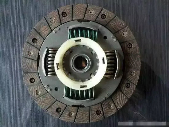离合器片,由摩擦片、盘毂、减振弹簧、减振盘、阻尼片等零件组装而成,在汽车行驶过程中,踩下离合器踏板,离合器片便与发动机飞轮分离,在由高档位切换至低档位时,当离合器片与发动机飞轮连接,随着发动机转速的降低,汽车被迫降到和发动机转速相匹配的行驶速度,其自身的惯性动能被自动消耗。