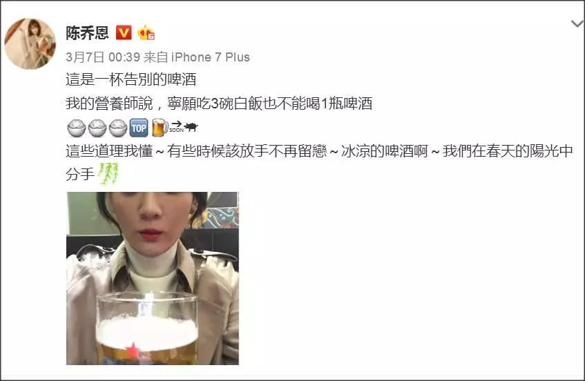 陈乔恩戒酒减肥: