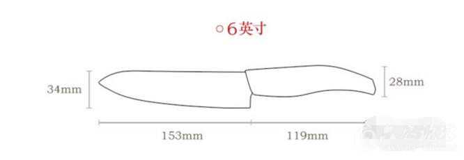 我买的是6英寸的陶瓷刀,尺寸如图所示。