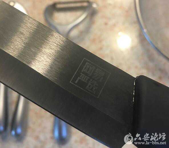 网易严选的logo刻在刀背上,刀面拉丝,颜值高。