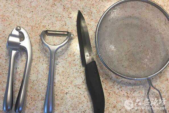 与其他厨房工具对比大概是下图的大小,刀具不大,但是我觉得实用性还是很高的。