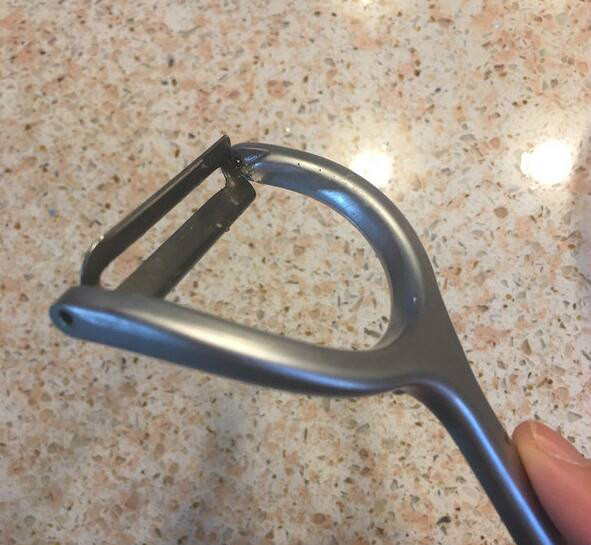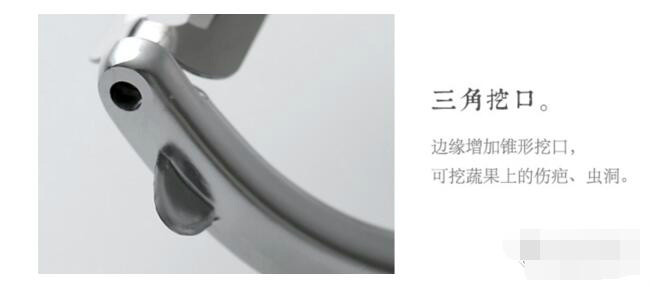 这个是我比较喜欢的设计,刀的侧面有一个三角挖口,挖土豆上的疤特别好用,而且不用担心划伤手指。