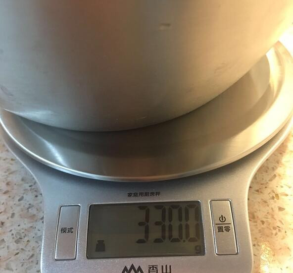 可能因为盆子里水没擦干,称出来330g,盆子还是挺厚实的。