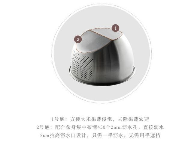 这个设计我很喜欢,不管1号还是2号面都能稳固的立住,浸泡与沥水都很好用。