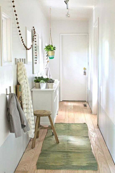 清爽的玄关设计也是不错的选择,木质的地板配上白墙就是很好的搭配了,狭窄的玄关空间的运用很重要。