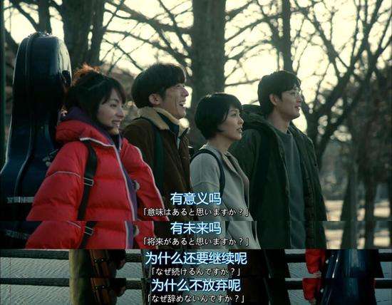 日本人的编剧法对现代性的表达一直很敏感,不是欧美那一套,也不是完全的现实主义,他们还保留了一点外在的眼光,在那些都市生活的软肋或者死结处,提炼出寓言。比如《四重奏》不同集数里讨论的主题——婚姻的本质是爱情还是亲情、单相思是怎样的体验、兴趣到底是爱好还是梦想、人们怎么面对他们不为人知的过去……都像手术刀一样,戳到了观众的痛处。