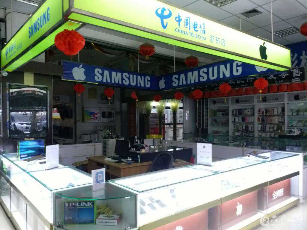 浙东商贸城西大门进去;中国电信浙东店