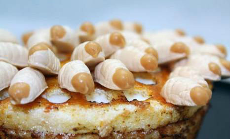 先不说味道,光看这造型就已经醉了……日本青森県八戸市的“赤いテントのコーヒー店”推出了一款恶趣味的幼虫软糖,光是造型就让人醉了,可尔必思味的外壳,里面的内脏是蓝莓口味……据说前akb48成员篠田麻里子很中意这款……