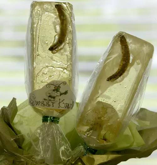 据说是把蝗虫或菜青虫等加进糖浆里面制成…这看得美食君汗毛瞬间竖起!还是很服气的…