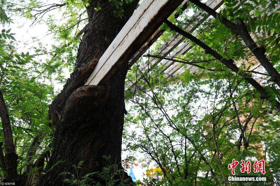 大树"咬住"钢架十多年不放 仿佛要吞食一般 ...