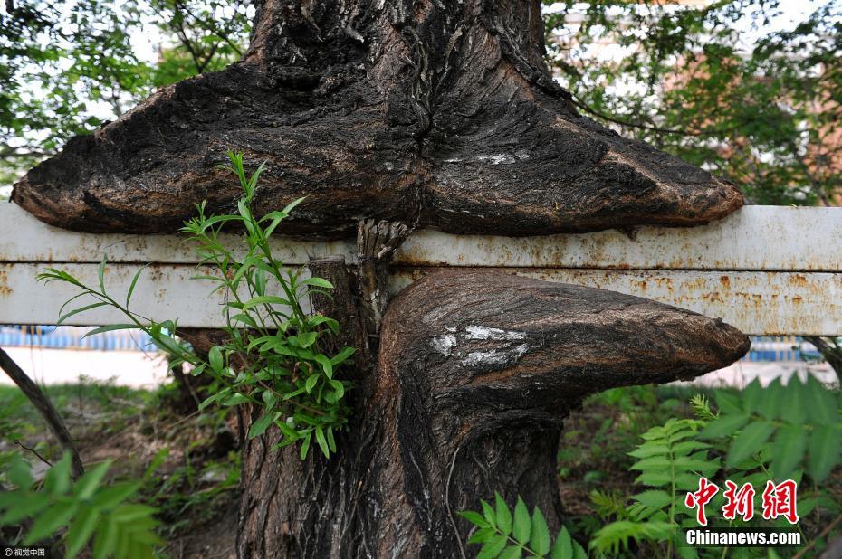 大树"咬住"钢架十多年不放 仿佛要吞食一般