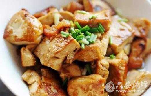 材料:五花肉、豆腐、蒜瓣、葱花适量