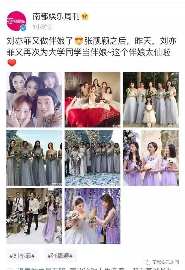 除了每次当伴娘都会抢镜的刘亦菲,娱乐圈的高颜值伴娘团还有: