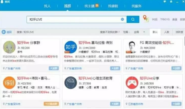 南都记者以“知乎LIVE”为关键词,搜索到大量免费分享知识付费产品的QQ群。