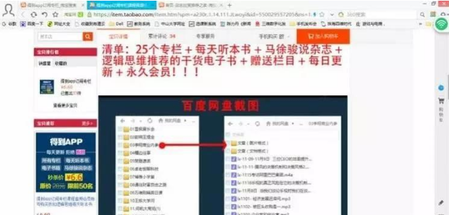 南都记者在一家淘宝店铺发现,6.6元即可买到得到APP25个栏目的付费内容和永久更新。