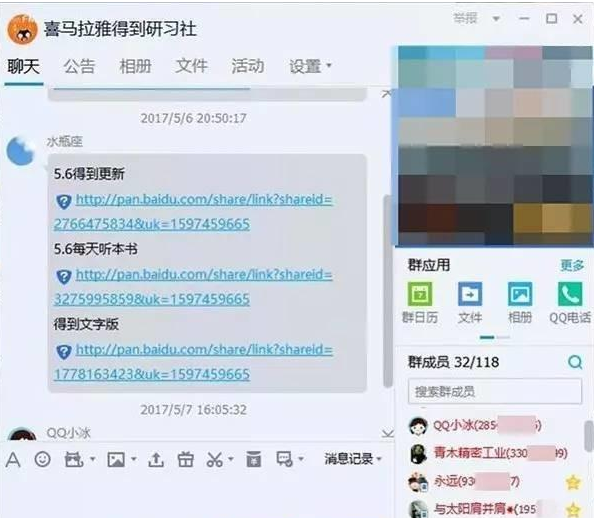在一个名为“喜马拉雅得到付费音频”的Q群内,群主“起凡资源吧”称,仅需35元,便可获得得到APP、喜马拉雅、混沌研习社、插座学院、网易课程、知乎等付费课程总计1700G的资源。群公告显示,“所有音频和视频都是通过高级设备录制。”