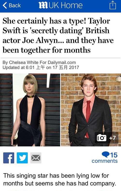 据外媒5月17日报道,淡出公众视野数月的美国歌手泰勒·斯威夫特(Taylor Swift)已“秘恋”上英国演员91年的乔·阿尔文(Joe Alwyn)数月,并称霉霉为了和Joe Alwyn约会还在伦敦租了一个房子。