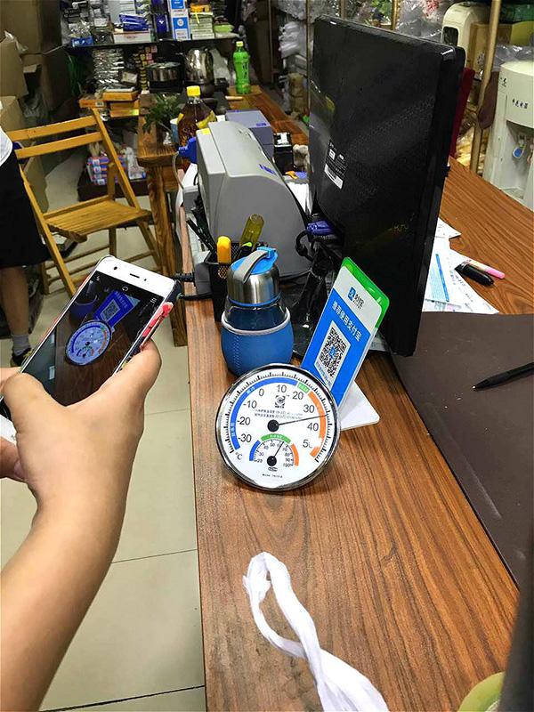 7月14日上午,解放日报·上观新闻记者来到商城现场。才进底楼,由于有四通八达的通道,尚能感受到一丝自然风吹。但当记者上楼,刚走出3楼电梯门,就觉得一股热气扑面而来。在一家纺织品店内,记者看到店内虽然有好几个电扇在“嘎吱嘎吱”地同时转动,但店主仍摇着蒲扇,不断在擦脸上的汗水。记者仅停留了15分钟,汗水就顺着额头、手臂等不断流下,衣服被汗水浸湿了一大片。记者拿出随身携带的温度计在店内测量,发现温度高达37 。