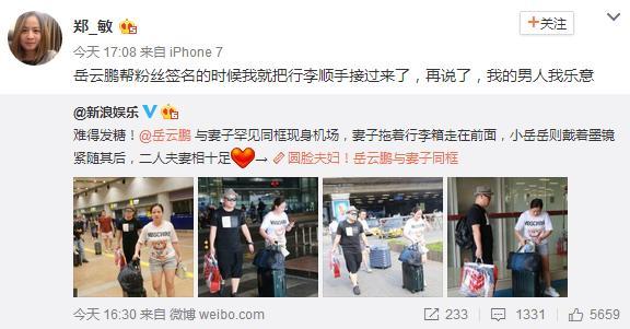 对此,郑敏霸气怒怼:“岳云鹏帮粉丝签名的时候我就把行李顺手接过来了,再说了,我的男人我乐意!”