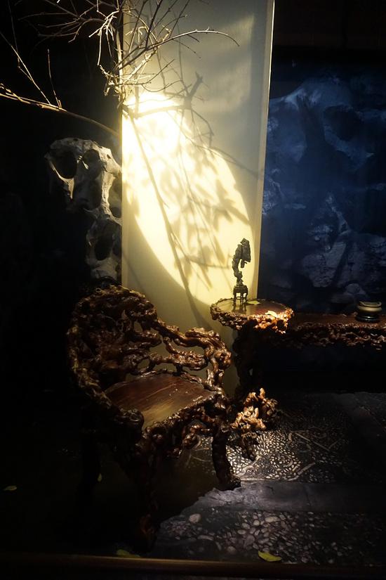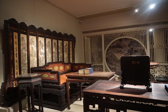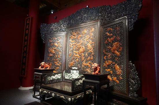 此次展览从国与家两个大的方面入手,以清代康雍乾三朝为核心。康熙时期家具制作继承明代宫廷风格,在髹漆与螺钿镶嵌工艺方面卓有精进,整体风格浑厚质朴又不失庄重华美。雍正时期造办处的制作思路发生了较大的改变,在皇帝的授意之下创立了内庭恭造的式样。雍正帝始终坚持家具制作的文人元素,亲自参与家具的设计与打样,使这一时期的家具充满了清雅隽丽的特点。乾隆时期家具利用各种成熟工艺和珍贵材料,在乾隆帝的旨意下,不仅样式丰富,而且还融入了深厚的儒释道文化元素。从紫禁城到三山五园,从盘山行宫到避暑山庄,乾隆帝对室内家具进行了全面的改造,根据不同的环境配置不同的家具。  展厅中坐具