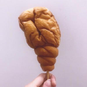 据说是叫鸡腿面包,油油的,一次性筷子插着,里面还有一小段香肠……