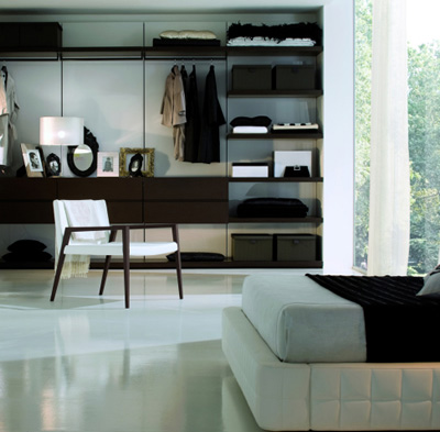 无论柜子里面的衣物收纳得多么随意,只要有一个大大的柜门把它们遮挡起来,便会非常整齐。白色也会增加光感,让空间变得明亮。