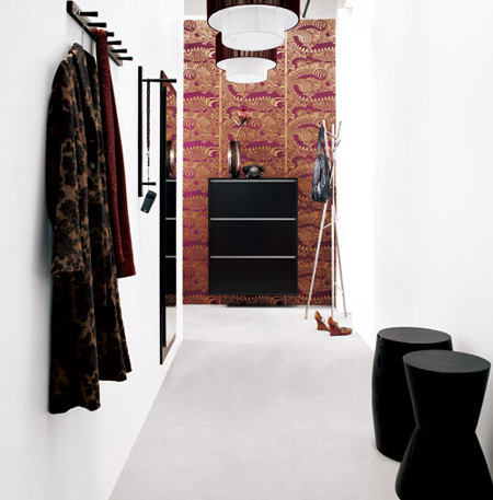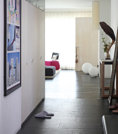 很多公寓的内部空间结构,在相对的两个房间之间由一个走廊或通道连接,这处留白不妨好好加以利用,摆放尺度适当的家具,方便主人存放外出衣物或经常取用的零碎物品。玄关家具因为其特点,依然是这个位置的首选。风格不必过于局限,但是这个位置也决定了你挑选的眼光,既要与居室内整体风格协调搭配好,最好也有一些新意。利用挂画、摆件、鲜花等装饰,都是不错的方法。